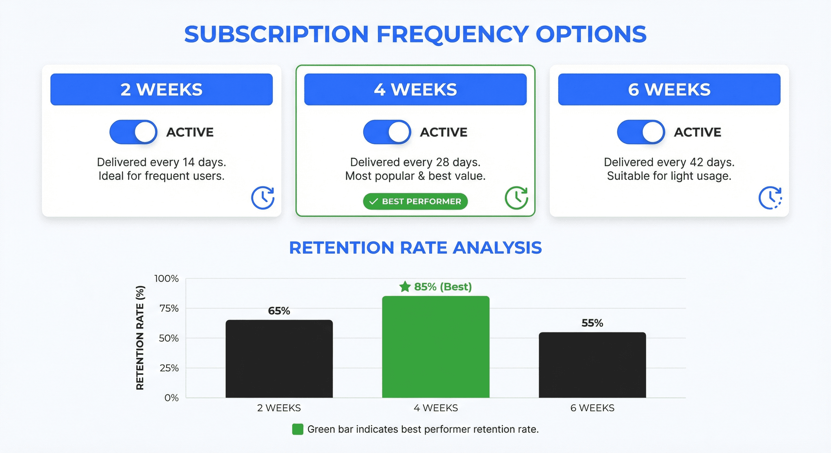 If consumption rates vary, flexible frequency options might improve retention