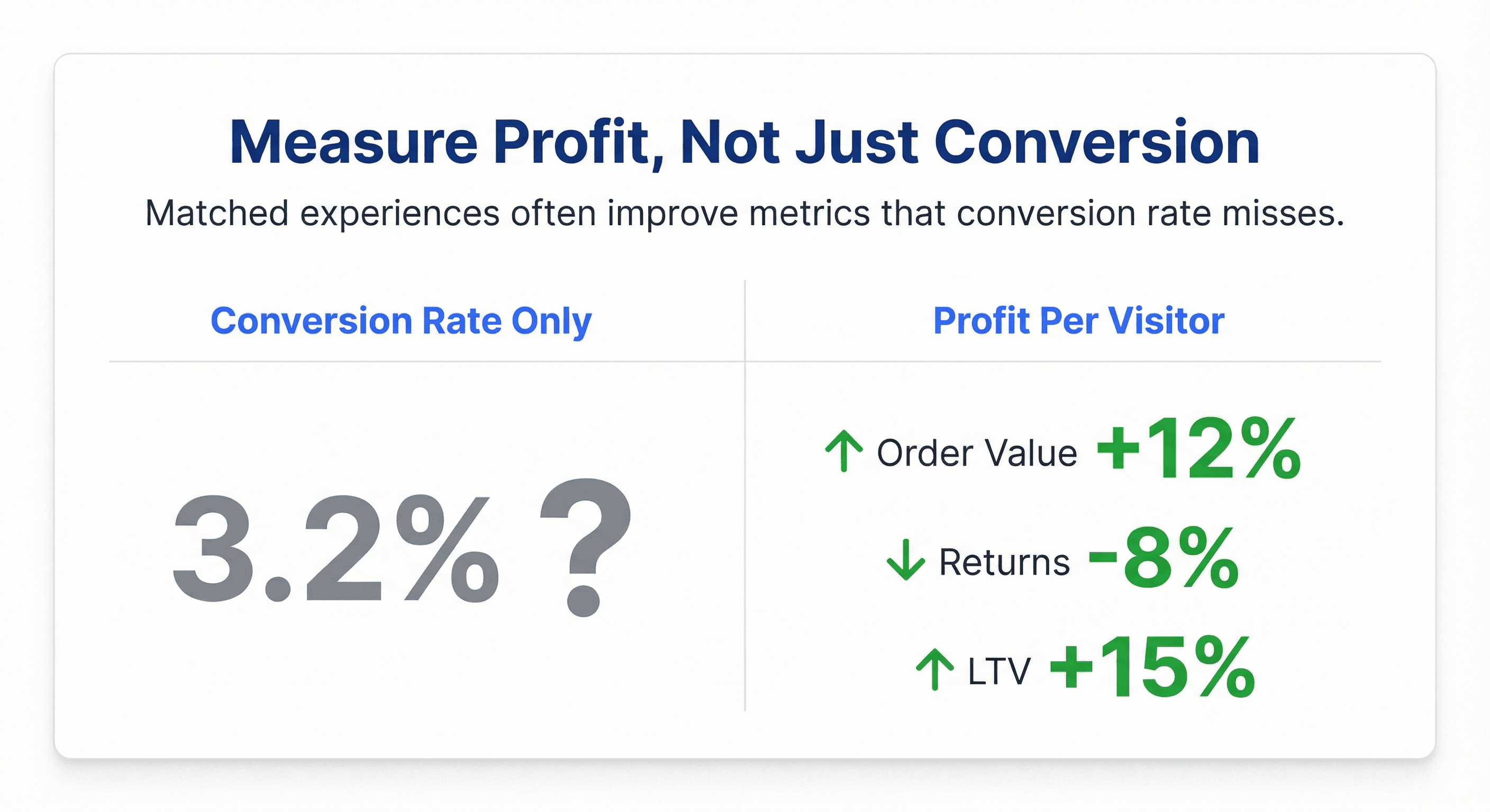 Pick your highest-spend campaign. Create one matched experience. See if profit per visitor goes up.
