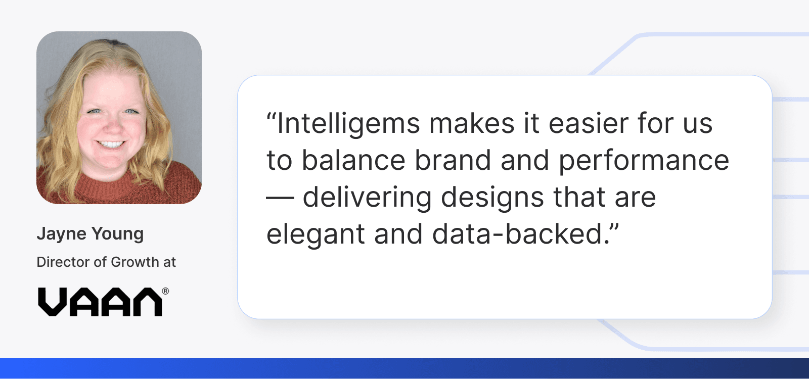 "It’s not just talk — Intelligems is always on top of our requests. When we agree on something with Intelligems’ team, they take action, making sure everything gets covered and sent over. It’s great to work with a partner that follows through." – Jayne Young, Director of Growth, The VAAN Group